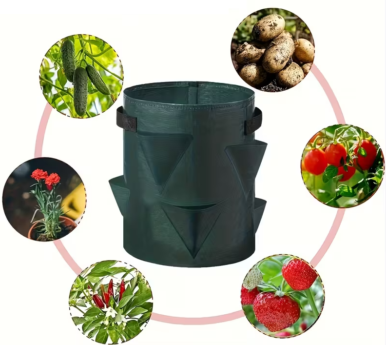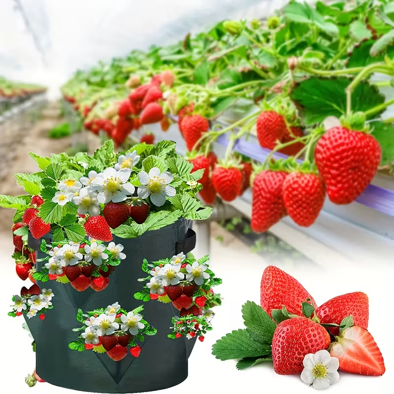 Tämän mansikankasvatuspussin tilavuus on 37,85 litraa ja se on valmistettu korkealaatuisesta kuitukankaasta. Se yhdistää maalaismaisen tyylin käytännölliseen muotoiluun, antaen sille luonnollisen ilmeen ja kestävän rakenteen.