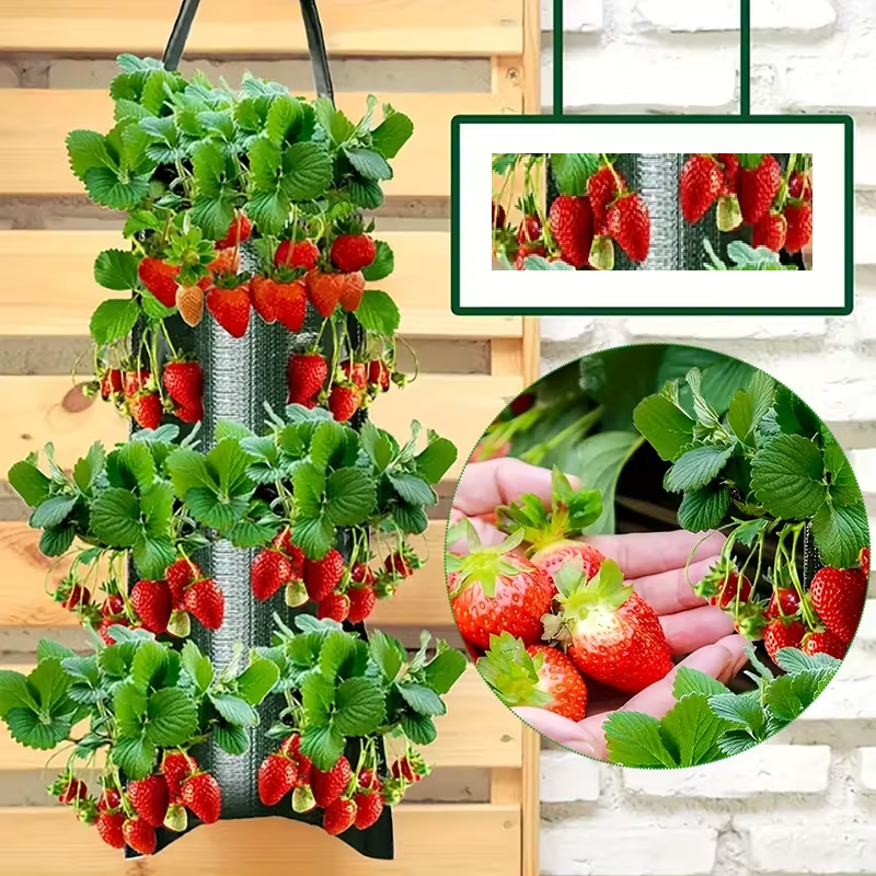 • Tilaa 8 taimelle – Erityisesti suunnitellut reiät ja sivutaskut mahdollistavat jopa 8 mansikantaimen istuttamisen samanaikaisesti. Ihanteellinen pystysuuntaiseen kasvatukseen ja sadon maksimointiin.